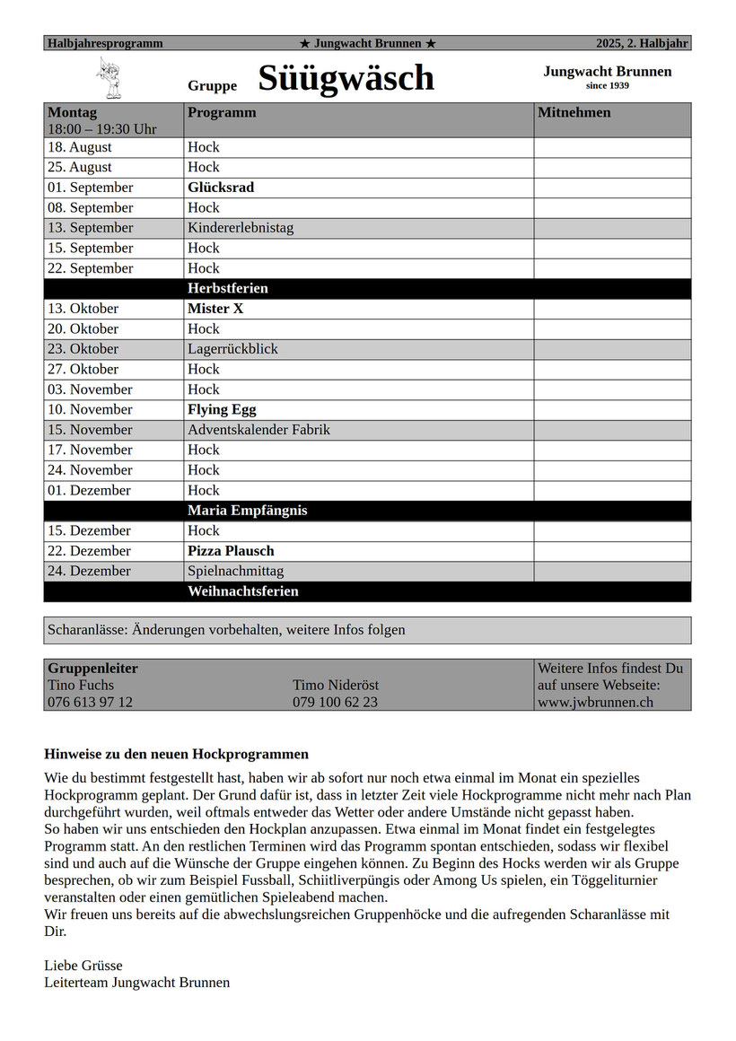 Gruppenhock: jeweils Montags, 18:00 - 19:30 Uhr