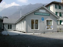 ÖV: Beim Bahnhof Brunnen nimmt man die Unterführung Richtung "Aula/Schulareal". Sobald man aus der Unterführung hochsteigt, biegt man nach links und geht der "alten Kantonsstrasse" entlang bis zum Restaurant Central. Da biegt man in den Mettlenweg ein und sieht hinter dem Viadukt das JW-Lokal.