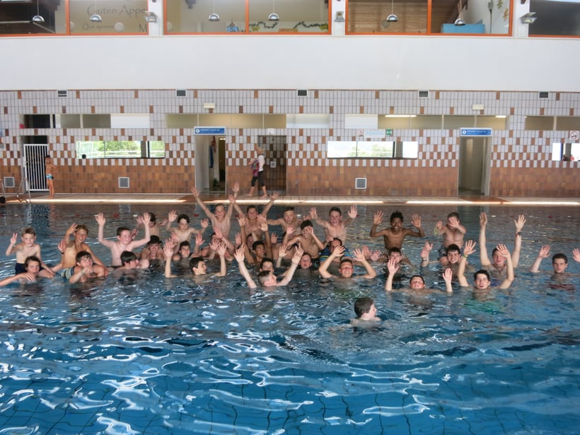 Um 9:00 Uhr liefen die Jungwächtler Richtung Italien zur Badi. Doch zuvor gab es ein Frühstück. Ein kleines Stück fuhren sie mit dem Bus. Sie hatten grosse Freude als sie an der Badi angelangt sind. Am Abend gab es, wie immer nach dem Badetag, einen Lottomatch und eine Singrunde.